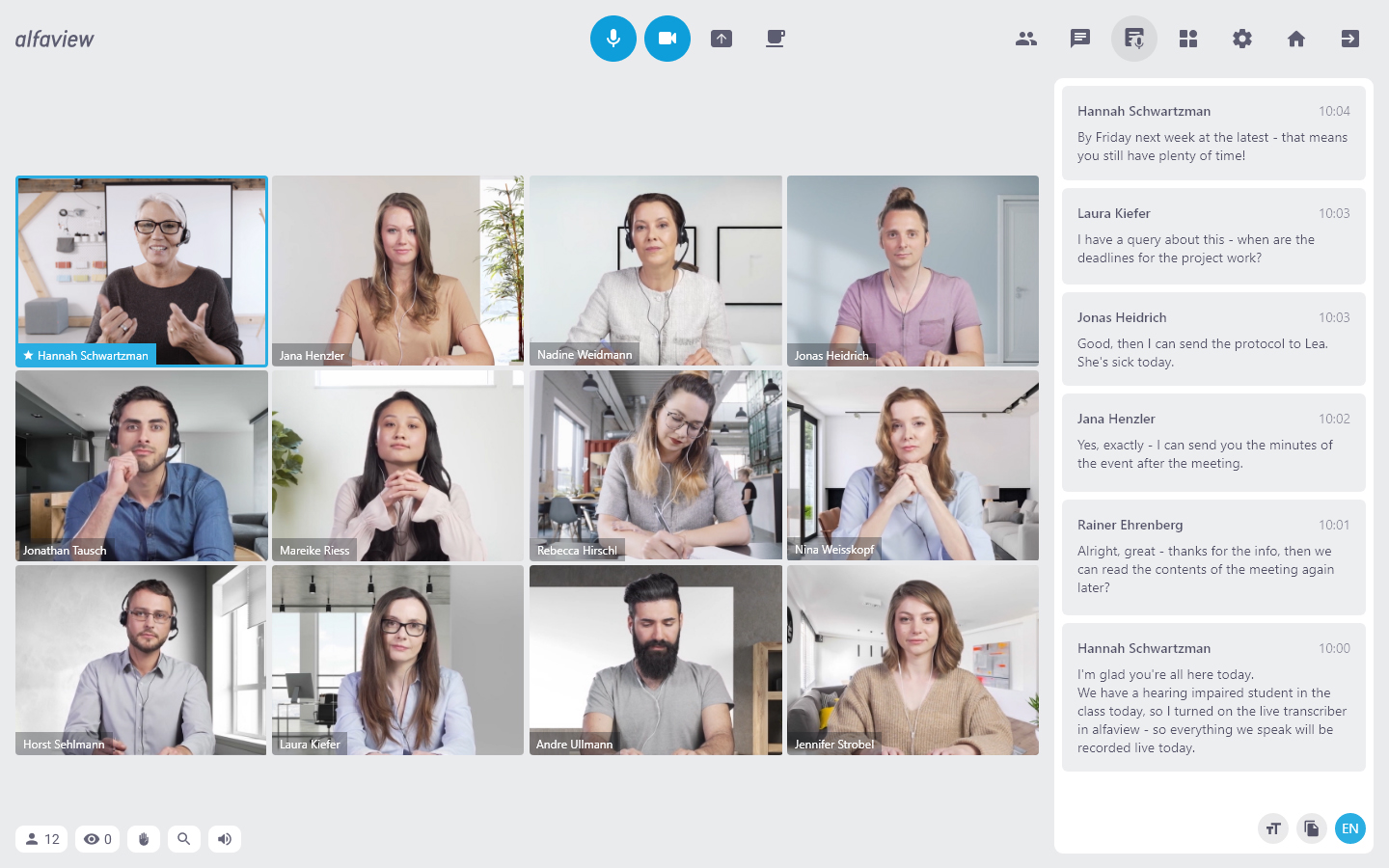 In addition to implementing the speech technology in the alfaview software, the companies alfaview, alfatraining and EML, together with Karlsruhe University of Applied Sciences (Prof. Dr.-Ing. Matthias Wölfel) and the University of Hohenheim (Prof. Dr. Jens Vogelgesang), have also applied for a forward-looking research project funded by the German Federal Ministry of Education and Research (BMBF), in which the partners aim to demonstrate how the use of virtual rooms can overcome distances and lead to an improvement in the quality of life.